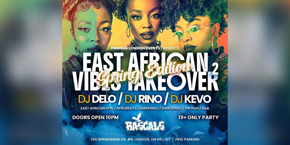 Pamoja London Events welcomes you to the EAST AFRICAN VIBES TAKEOVER 2: SPRING EDITION @ RASCALS on Saturday, April 25th, 2026, from 10:00 p.m. to close.