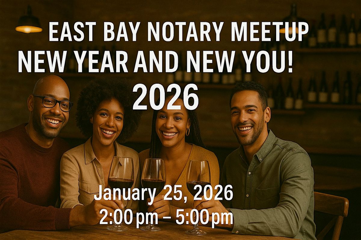 Hey, East Bay Notaries! Kick off the year with us at the East Bay Notary MeetUp. It’s the perfect chance to connect in person, share tips, and start fresh with new goals. Whether you're just starting out or a seasoned pro, come hang out, learn, and grow your network. Let’s make this year your best yet!