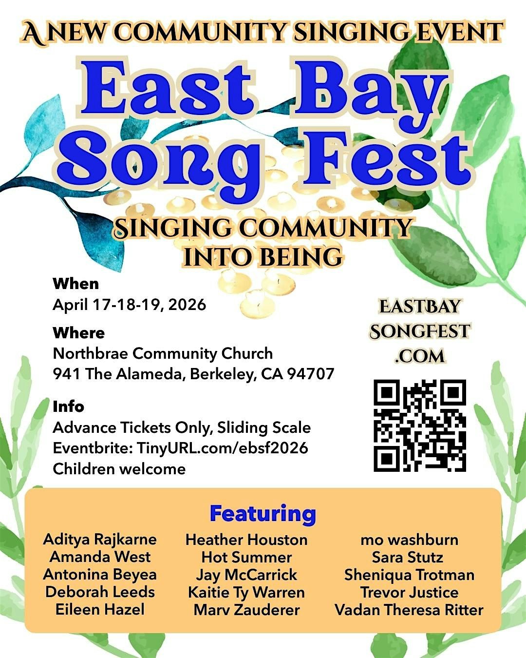 This is 's inaugural year. Join us! Community Singing is a uniquely powerful and restorative force, and it's high time we had a weekend-long retreat event in the Bay Area. Living Room Choir founders and facilitators are banding together with other local and visiting songleaders to create this new multi-day community singing deep dive right in our neighborhood.