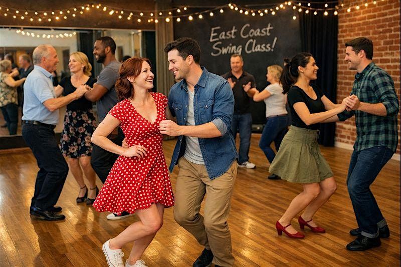 Get ready for an upbeat, feel-good class that’s all about fun, connection, and great music. Our East Coast Swing group class is high-energy, welcoming, and designed to help you feel confident on the dance floor—whether it’s your first time or you’re brushing up on the basics.