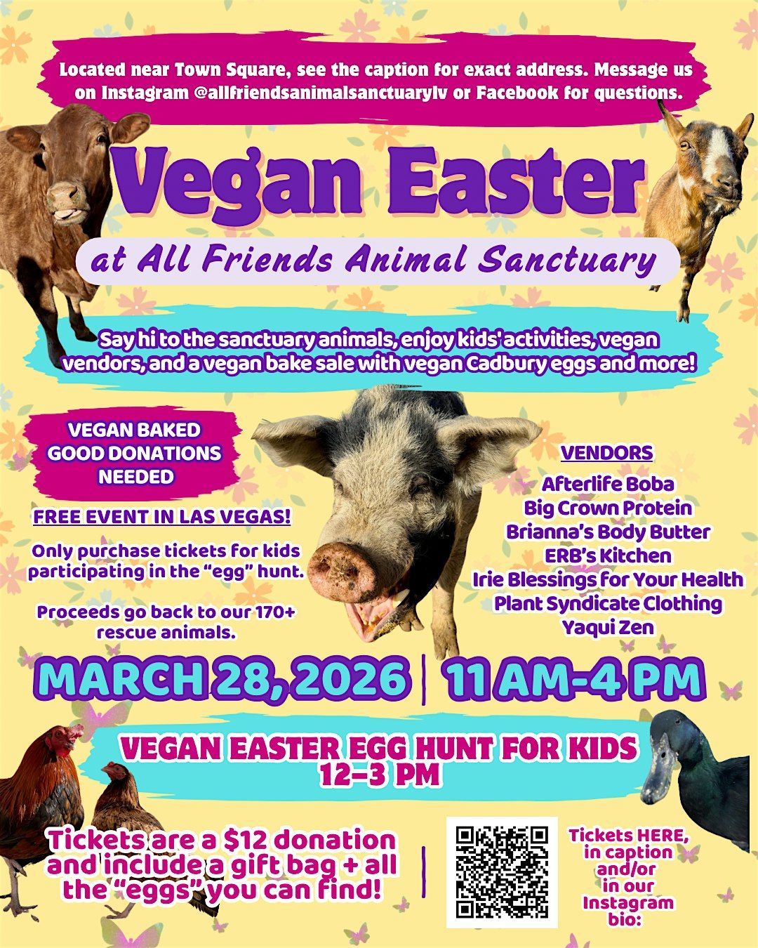 See this link for tickets: https://www.zeffy.com/en-US/ticketing/fourth-annual-all-friends-vegan-easter