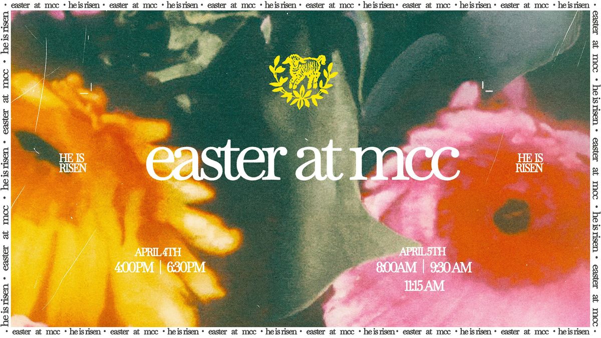 Celebrate Easter with us at MCC! This is a weekend of hope, worship, and joy as we gather to celebrate the resurrection of Jesus!