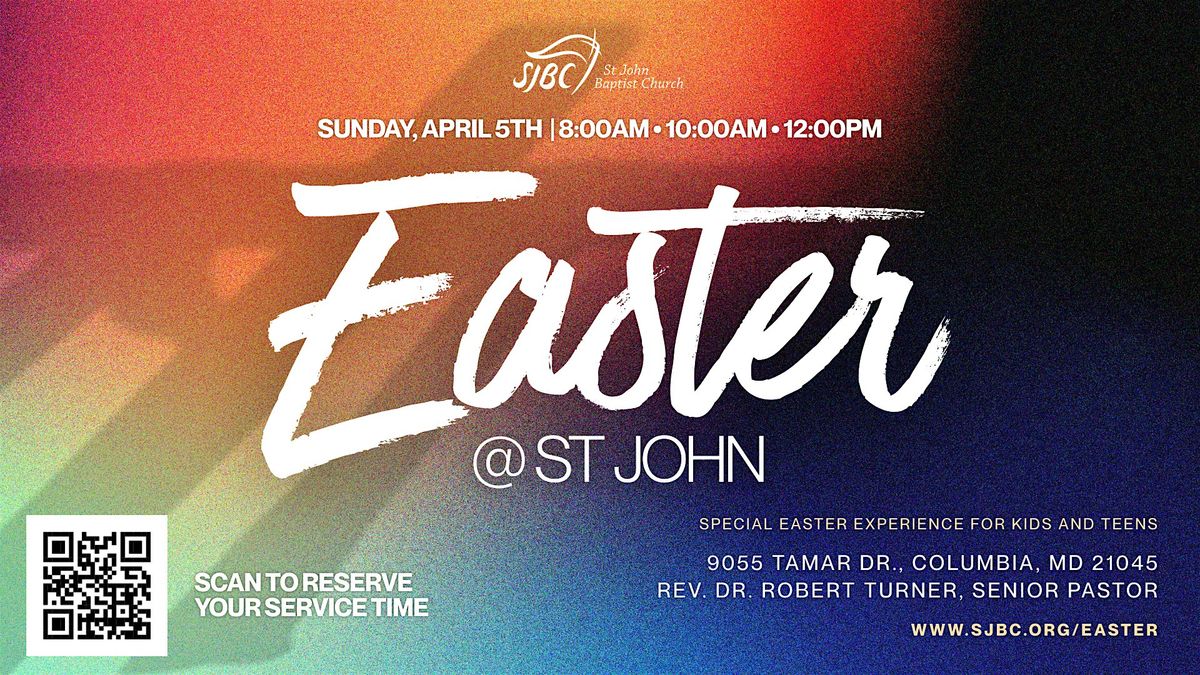 Join us for Easter St John! We'll kick things off on April 5, 2026 at 8:00 AM, 10:00AM, or 12:00pm. Bring your family and friends to rejoice and show gratitude to Jesus for his sacrafice.
