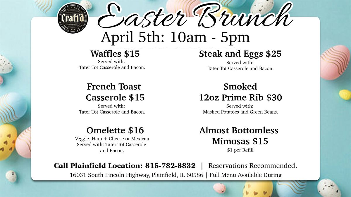 Easter Brunch at Craft'd Plainfield - Sunday 4/5/26