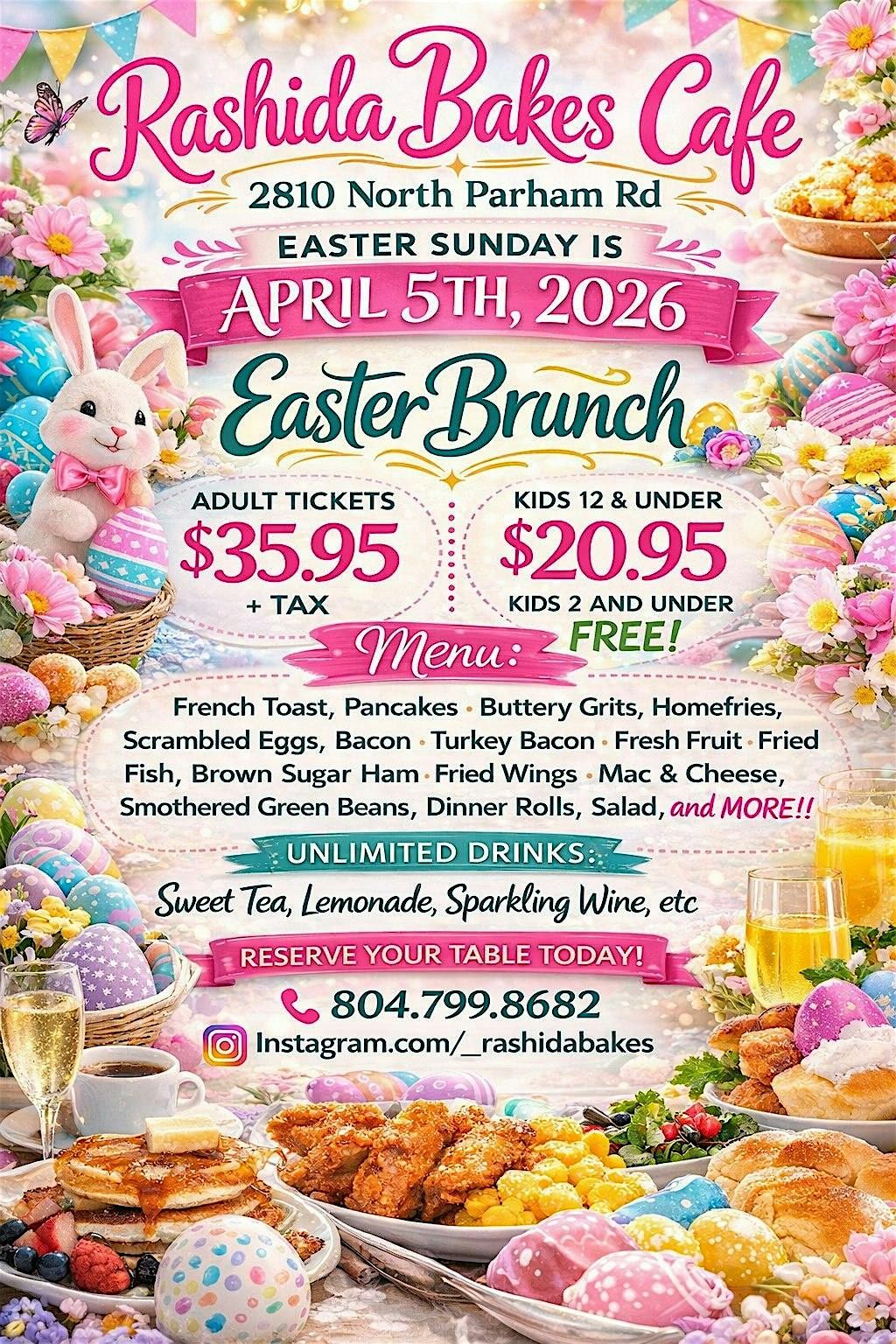 Hop on over and enjoy a delightful in person Easter Brunch with friends and family! Expect delicious food, great vibes, and plenty of smiles. It's the perfect way to celebrate the season, relax, and make some sweet memories. Can’t wait to see you there!