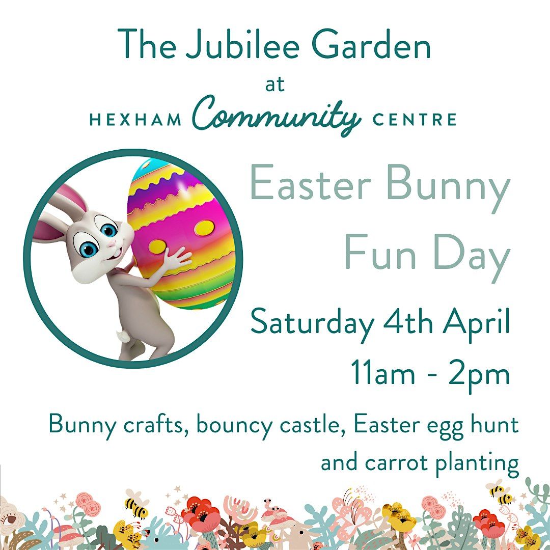 Join us at Hexham Community Centre for bunny crafts, bouncy castle, Easter egg hunt and carrot planting in the garden.