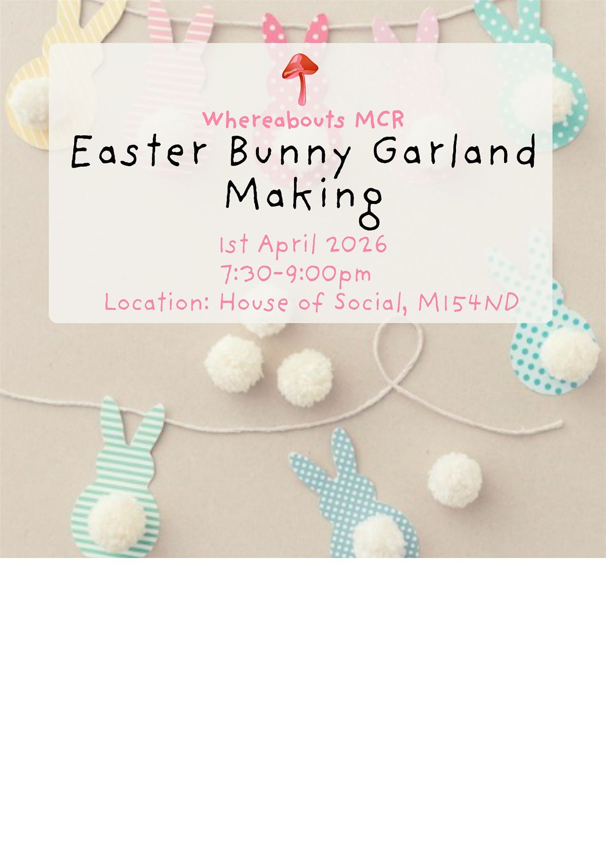Join us at the House of Social Manchester for a fun and creative evening! On April 1, 2026 at 7:30 PM (BST), we'll be crafting adorable Easter bunny garlands together. Perfect for getting into the spring spirit and meeting new friends. No experience needed—just bring your creativity and good vibes. Can't wait to see you there!