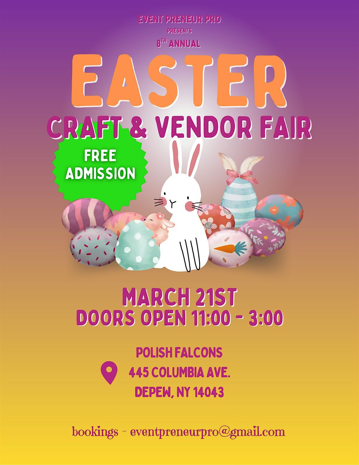 For our 2026 season, we're proud to announce that we'll be holding out 8th annual Easter Craft & Vendor Fair at the Polish Falcons on 3/21About this Event