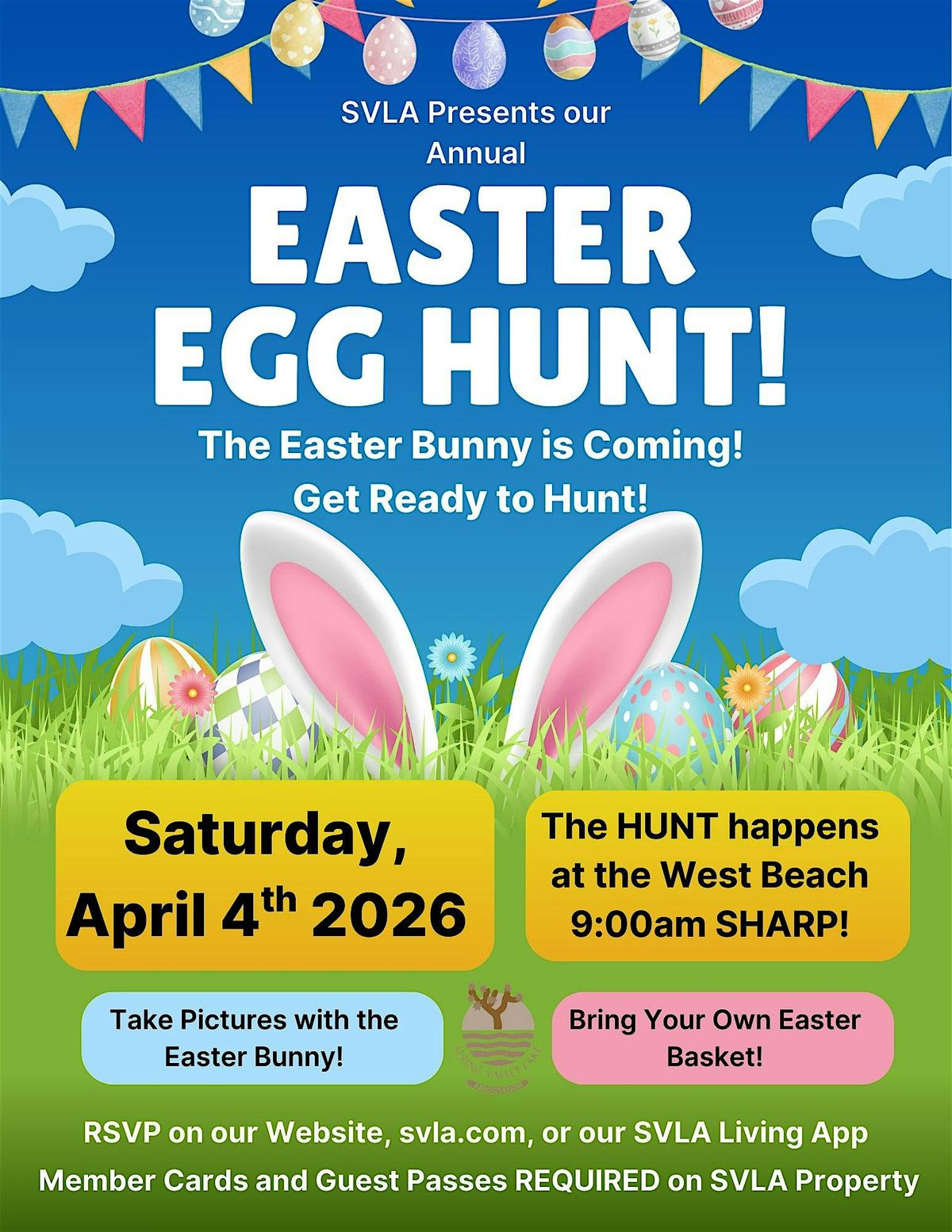 SVLA's Annual Easter Egg Hunt! Come hunt for eggs, stuffed with treats, and take pictures with the Easter Bunny.