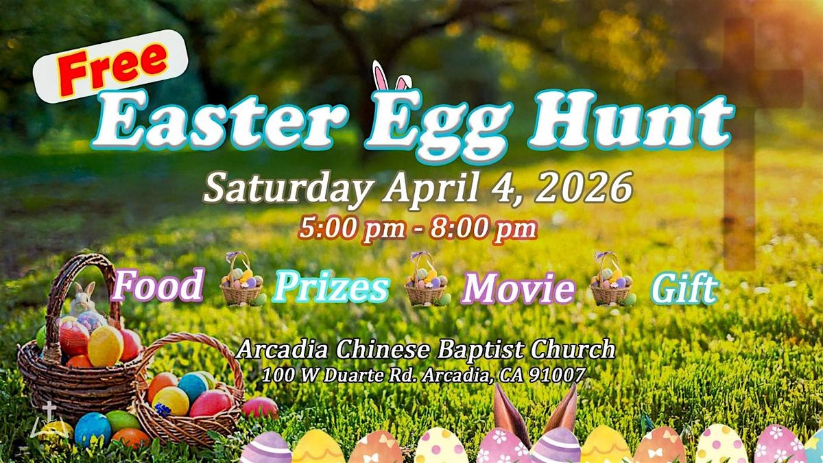 Come join us at Arcadia Chinese Baptist Church for a fun-filled evening of hunting for Easter Eggs! Bring your family and friends for an exciting adventure as you search for hidden treasures throughout the church grounds. This event is perfect for kids ages 2-12.