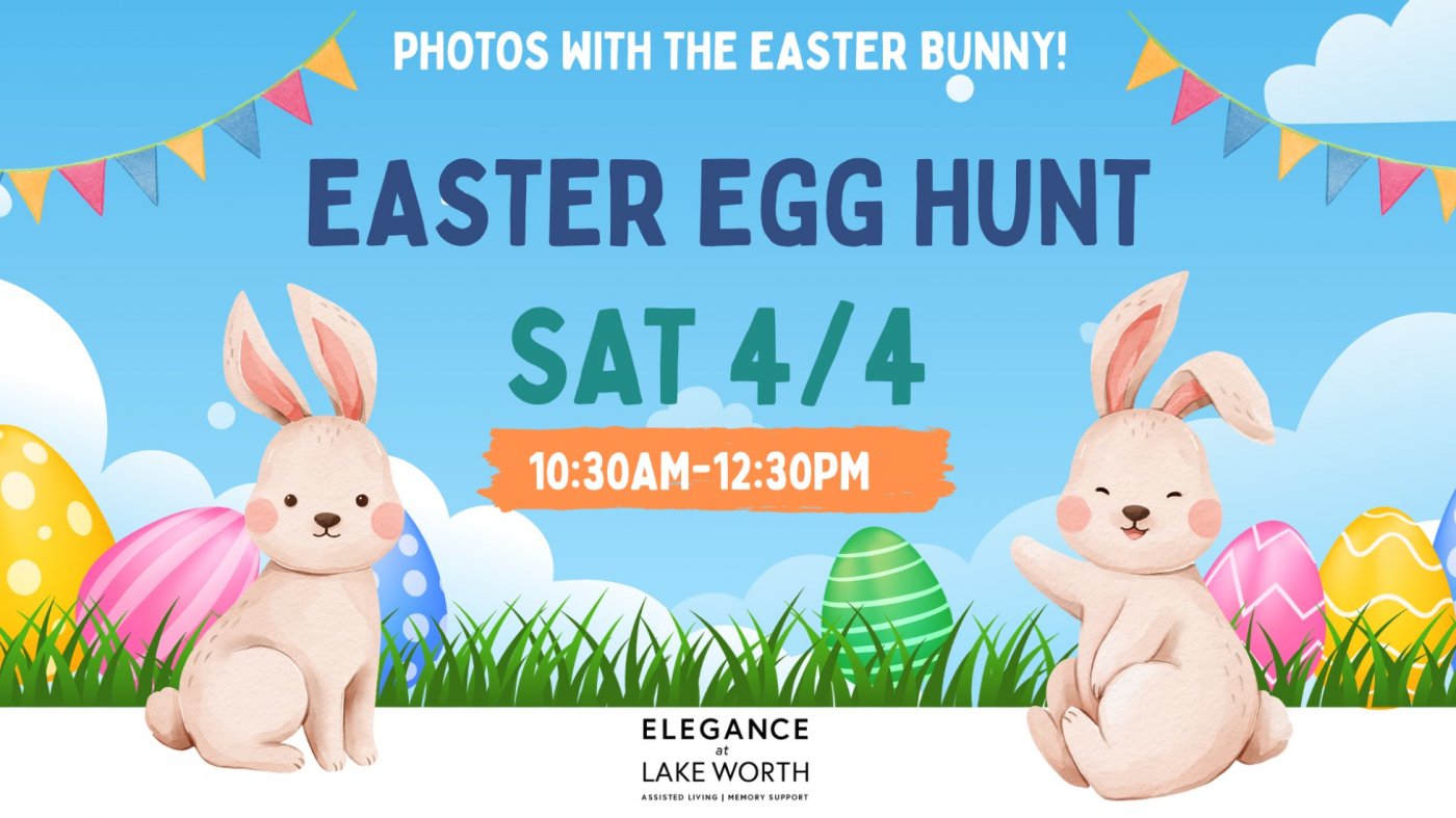 Elegance at Lake Worth is hosting an Easter Egg Hunt on Saturday April 4th, from 10:30am-12:30pm. This is a free event for the local community.