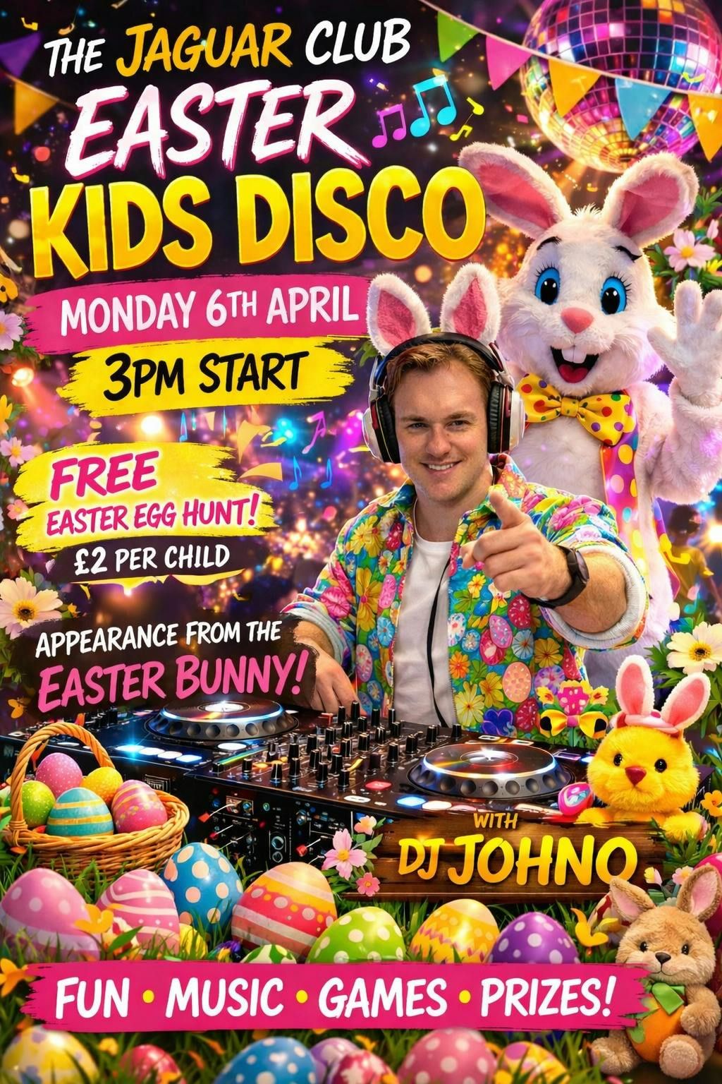 Easter egg hunt 3-5pmFamily disco 5-7pmall children will receive an Easter egg