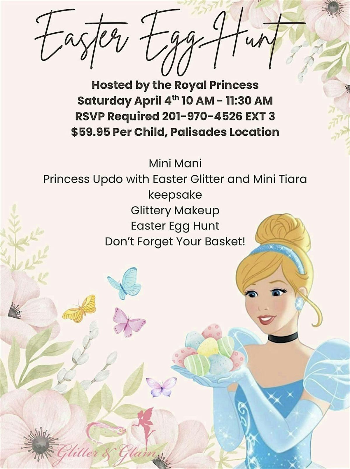 Host by Royal Princess, enjoy us for a mini mani, easter mini tiara, keepsake glitter makeup and easter egg hunt.