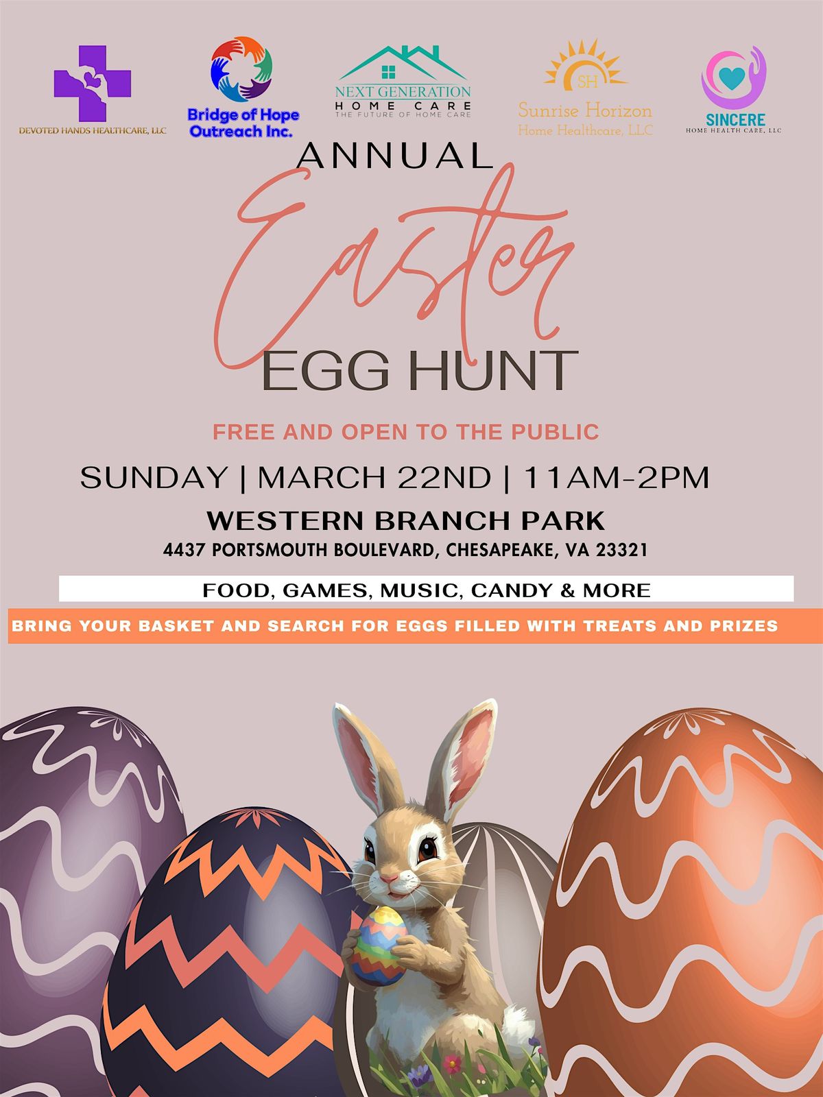 Get ready for an awesome day outdoors at our in-person Easter Egg Hunt! Bring your friends and family, and don’t forget your baskets. It's all about finding those colorful eggs hidden around while enjoying some fresh air and good vibes. Perfect for kids and adults alike—come make some great memories and maybe snag a sweet surprise or two!