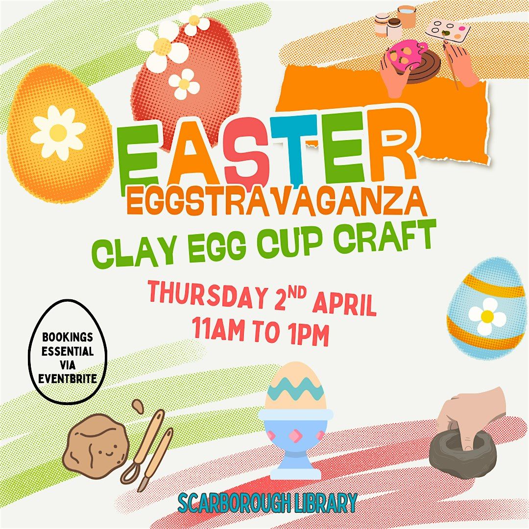 Come join us at Scarborough Library to design and create your own clay egg cup. All tools and clay will be provided. This event is free of charge and will be held in the Community Space at Scarborough Library. Please book your place to drop in anytime between 11am and 1pm.