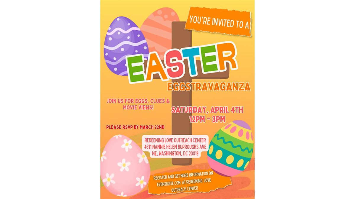Hop on over for an awesome day filled with egg hunts, fun games, and tasty treats on Saturday April 4th from 12- 3pm at RLOC for ages 2-17. This event will feature a special movie just for the kids, arts and crafts, and a scavenger hunt! If you would like to attend this event we kindly ask that you register here on eventbrite or add your name to the sign up sheet on table in the Redeeming Love Outreach Center church lobby outside the sanctuary by Sunday March 22nd. Parents please include the name(s) and age of your youth to help with preparation. Non-members are welcomed to attend and all youth must be accompanied by an adult. If you would like to volunteer please email [email protected].