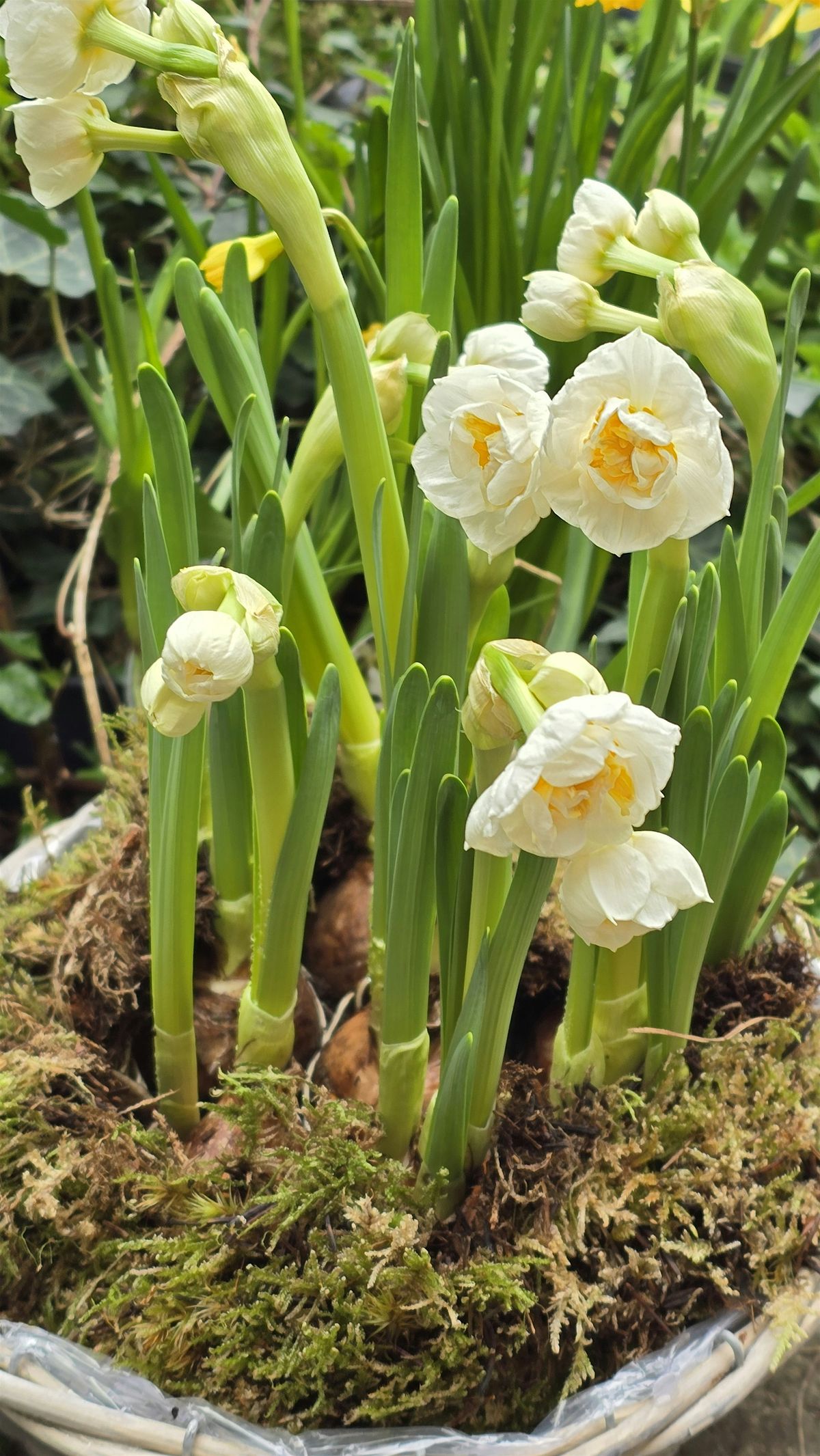 I will guide you through the steps of creating a floral centrepiece arrangement that celebrates the spirit of ostara, using Spring seasonal flowers, bulbs, foliage and moss.