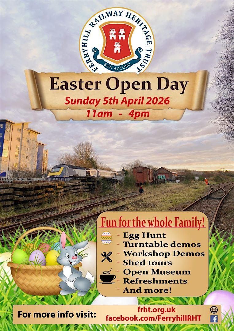 Bring your friends and family to enjoy exciting activities, tasty treats, and lots of smiles. It’s the perfect way to celebrate the season and make unforgettable memories. Don't miss out on the fun — see you there! You can have a Spin on the Turntable, see behind the scenes work on the railway carriages including the new Picnic Saloon, visit the new Museum, enjoy Ice Cream and light refreshments. Our volunteers will be offering a variety of activities and will guide you round the site. All the Children can join the easter egg hunt - we'll do our best to ensure all the kids get at least one egg! We are located right next to Duthie Park so it's easy to find us - just follow the signs from the Community Garden. There is a dedicated footpath right at the top of the bank overlooking the Children's Play Area. The nearest car parks are on Riverside Drive and in Duthie Park. Access to the Heritage Centre will be via the pedestrian entrance in Duthie Park, accessed from the Community Garden area. Please do not try to drive on to the site as there are a limited number of parking spaces available for disabled visitors on site but these need to be booked in advance. Please phone 01224-593528 and leave a message if we're not able to answer.