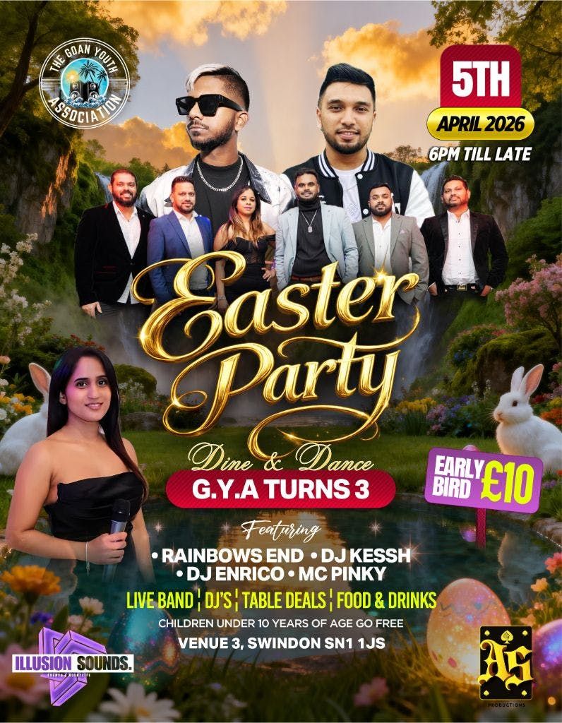 πΈπ£ EASTER PARTY 2026 β G.Y.A TURNS 3! π£πΈGet ready for an unforgettable night as The Goan Youth Association celebrates 3 amazing years with a spectacular Easter Party! πβ¨