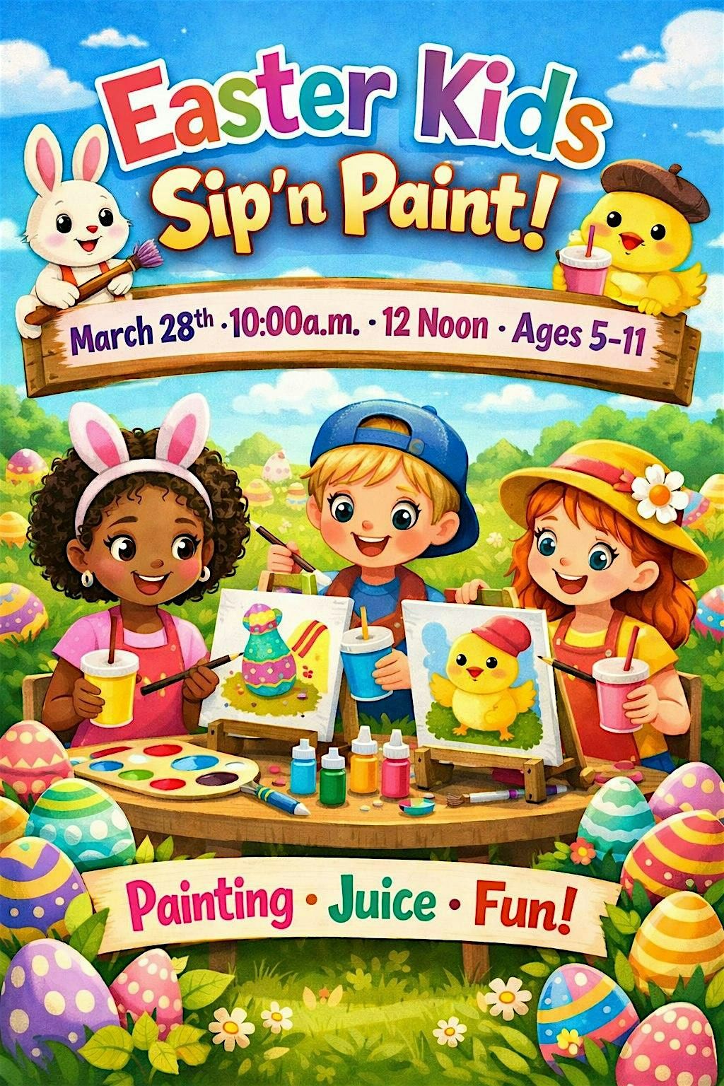 Bring the kids out for a fun-filled Easter Sip & Paint experience designed just for them! This special event is perfect for children ages 5–11 who love to get creative and celebrate the Easter season.