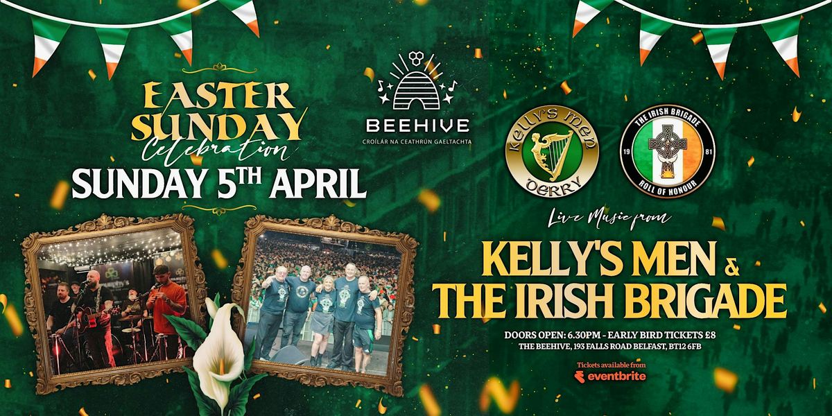 Easter Sunday 2026 at The Beehive with Kelly's Men and The Irish Brigade.
