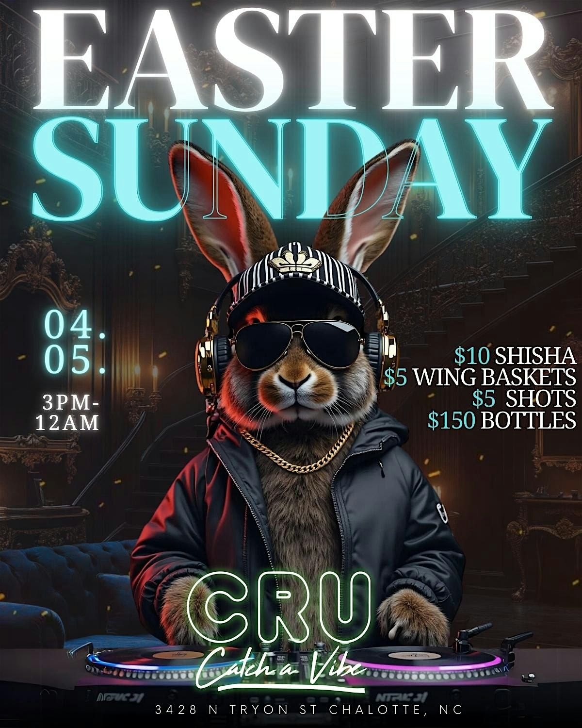 Catch the ultimate Easter Sunday vibe at CRU! We’re turning up the energy with music, hookah, drinks, and a luxury lounge experience you don’t want to miss. Whether you’re outside for the day party or sliding through for the night vibes, this is THE place to be Easter Sunday.