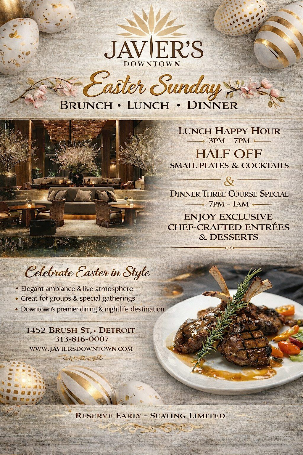 Welcome to Easter Sunday Lunch - Dinner Special at Javier’s Downtown! Join us on April 5, 2026 at 3:00 PM for a delightful meal filled with Easter cheer. Let's celebrate together in the heart of the city.