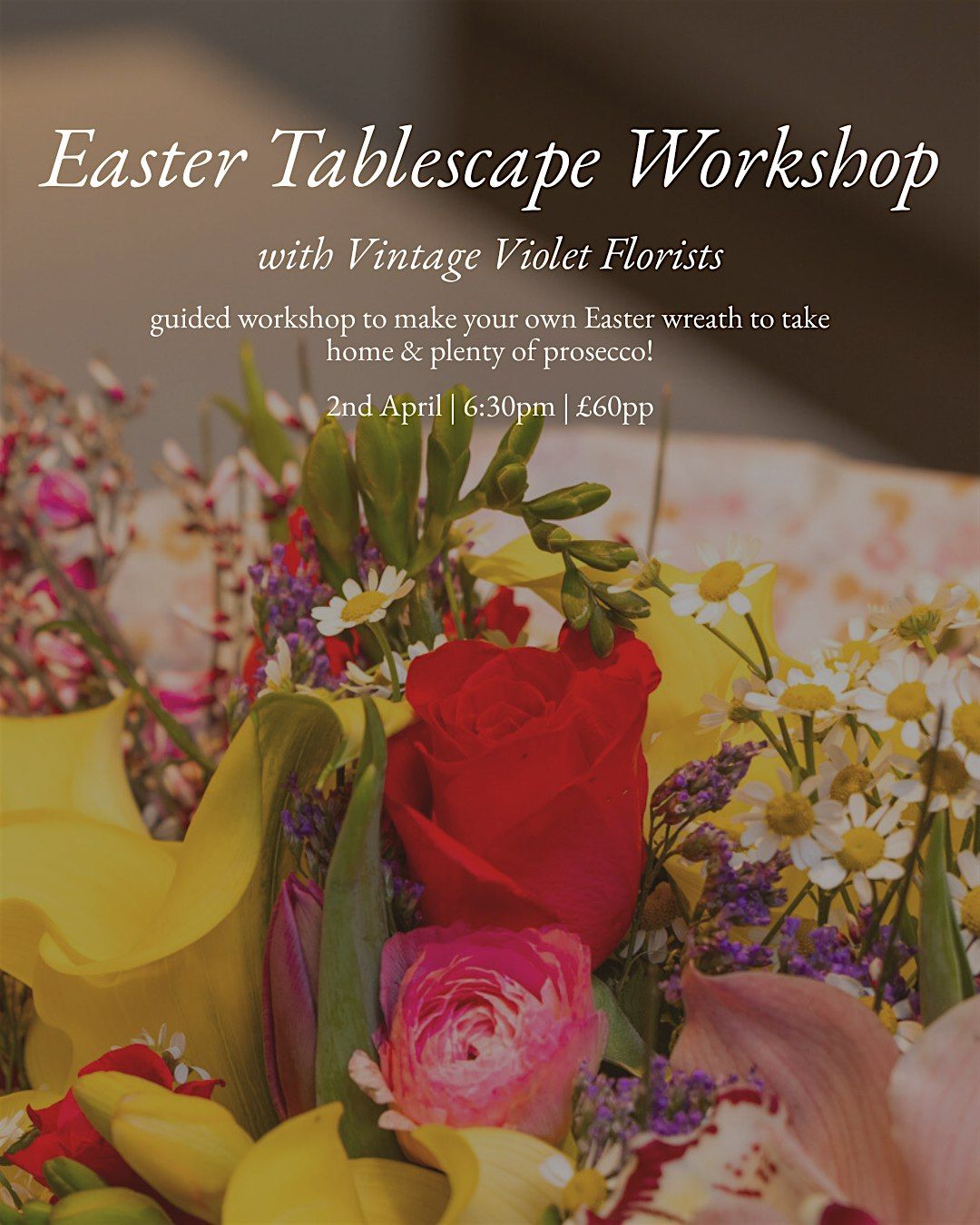Join us at Neptune Belfast for a relaxed and creative evening of seasonal floristry with David from Vintage Violet Florists. In this guided workshop, you’ll learn how to design and create your own beautiful Easter wreath using fresh spring foliage, delicate blooms, and natural textures.