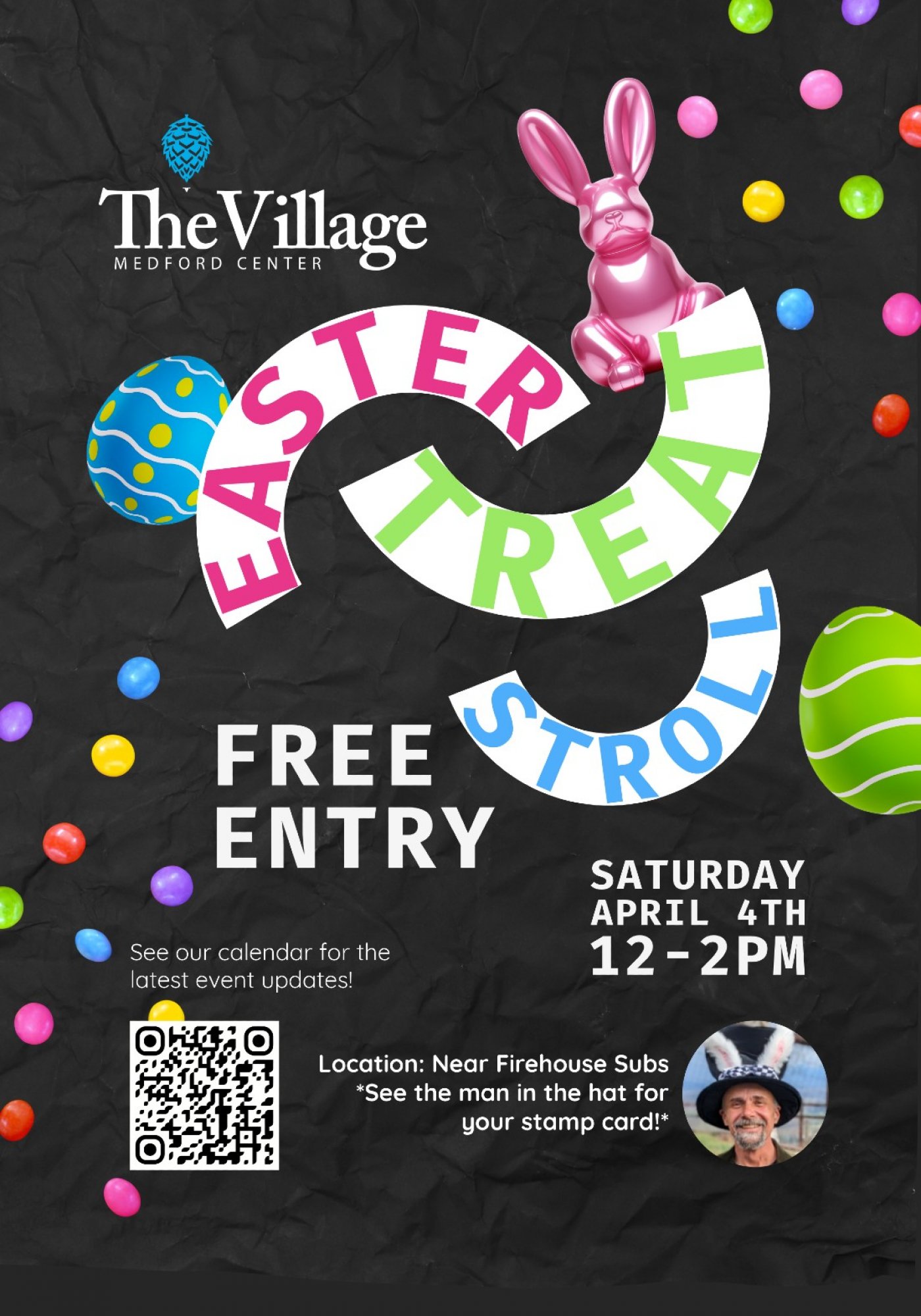 Stroll The Medford Center gathering treats. Play games, register for prizes. Take photos with the Easter Bunny. Get a custom creation from our balloon artist.