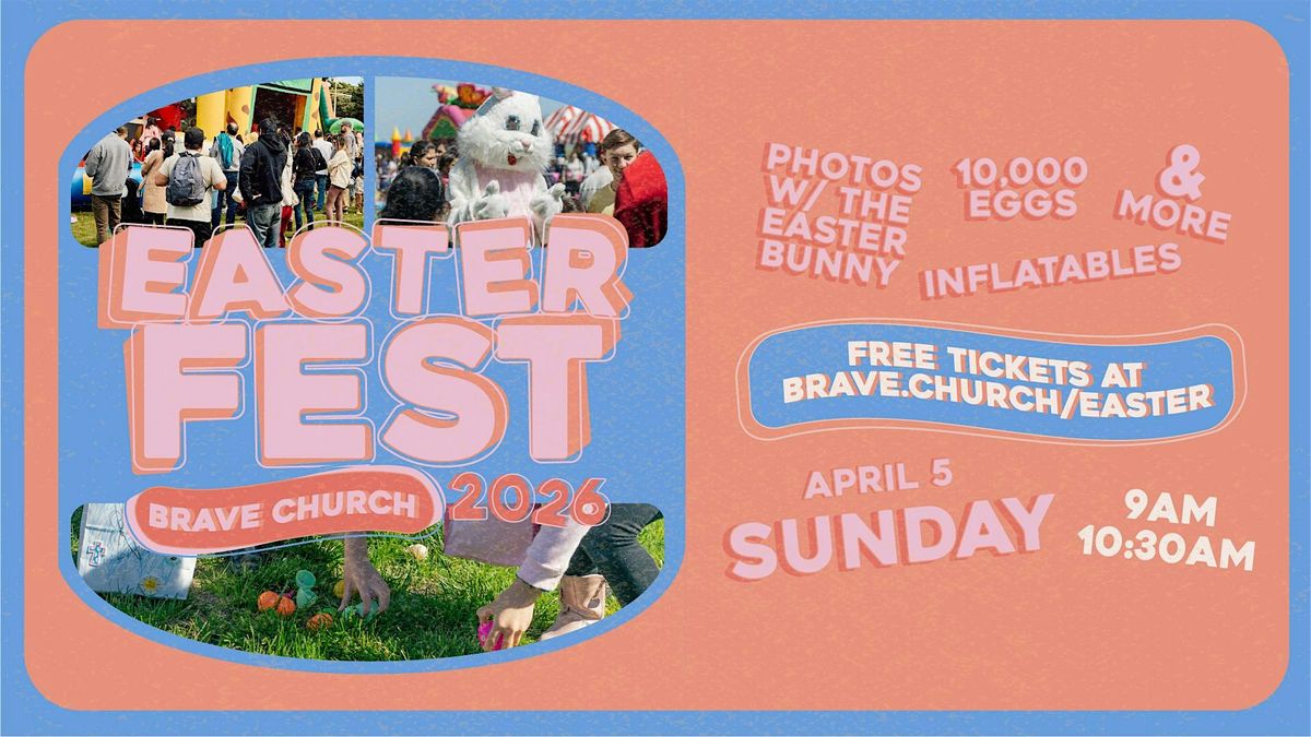 Youβre invited to join us at Brave Church for Easterfest! Enjoy great music, community, and a special message on the meaning of Easter. There will be bounce houses, photos with the Easter Bunny and over 10,000 Easter Eggs at each egg hunt all following the service.