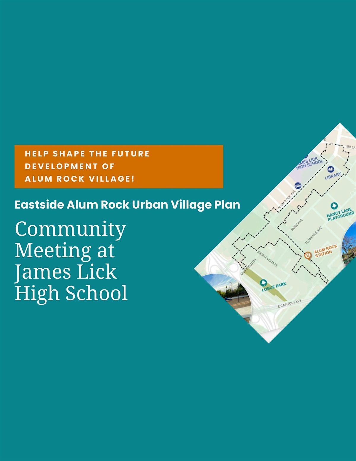 The City of San José's Planning, Building & Code Enforcement Department is inviting you to a community meeting taking place on Monday, January 26 from 6 to 8 PM at James Lick High School.