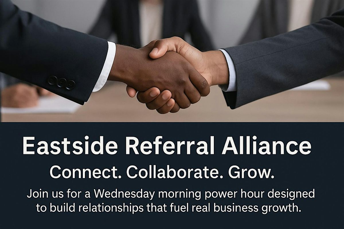 Join us for the Eastside Referral Alliance, a weekly networking meetup where local business professionals come together to share referrals, build meaningful relationships, and grow their businesses through trusted connections.