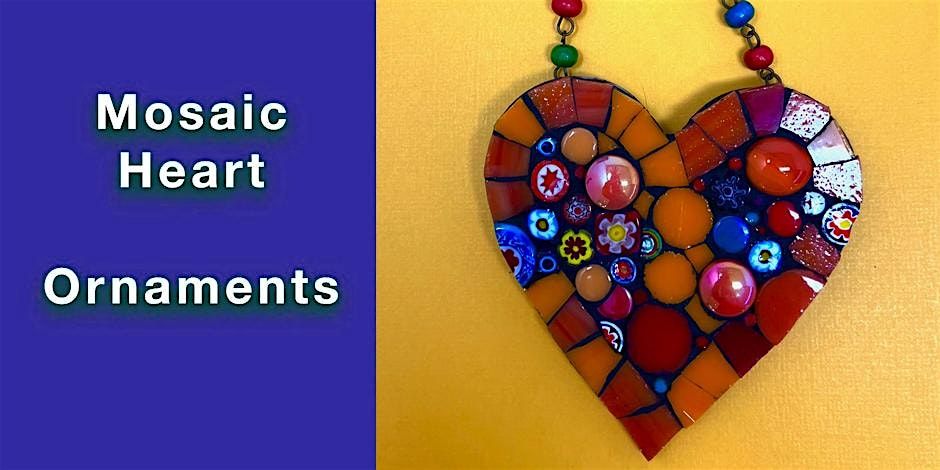 In this relaxing workshop students will create anywhere from 1 to 2 small colorful heart ornaments, (depending on skill level and speed). This is a terrific introduction to the art of mosaic so newcomers are welcome. More experienced mosaic artists will enjoy these small projects and the overall satisfaction of completing projects in a single work session.