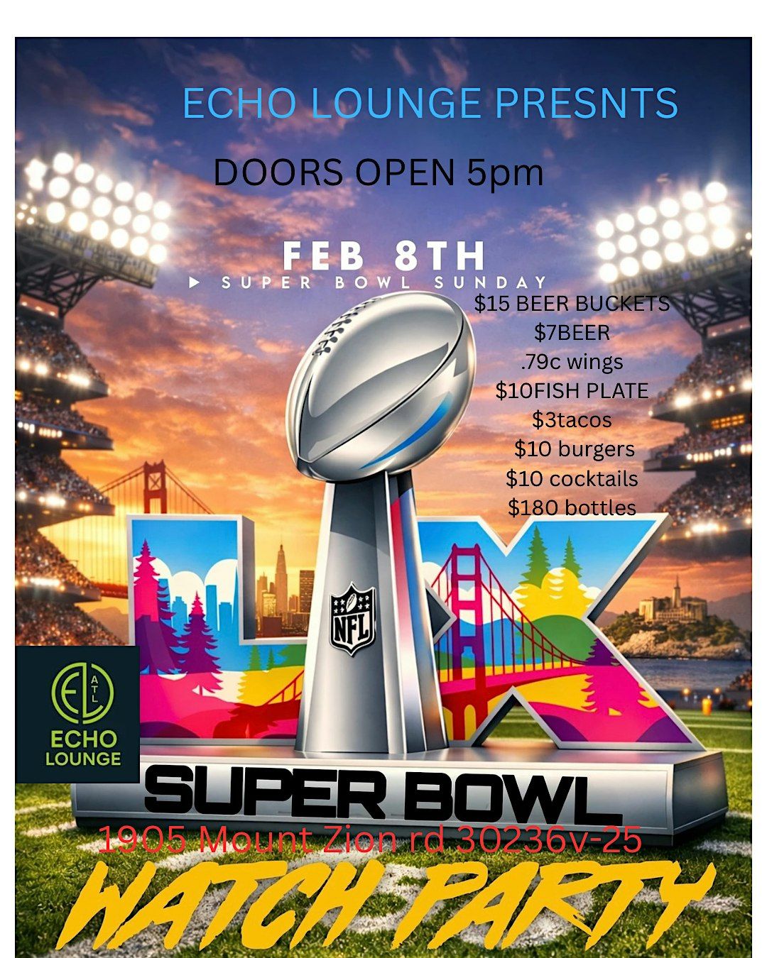 ECHO LOUNGE WATCH PARTY ON THE SOUTHSIDE BEER HOOKAH FOOD LIVE MUSIC 1905 mount Zion rd morrow ga 30236v-25 INSTAGRAM @echolounge7