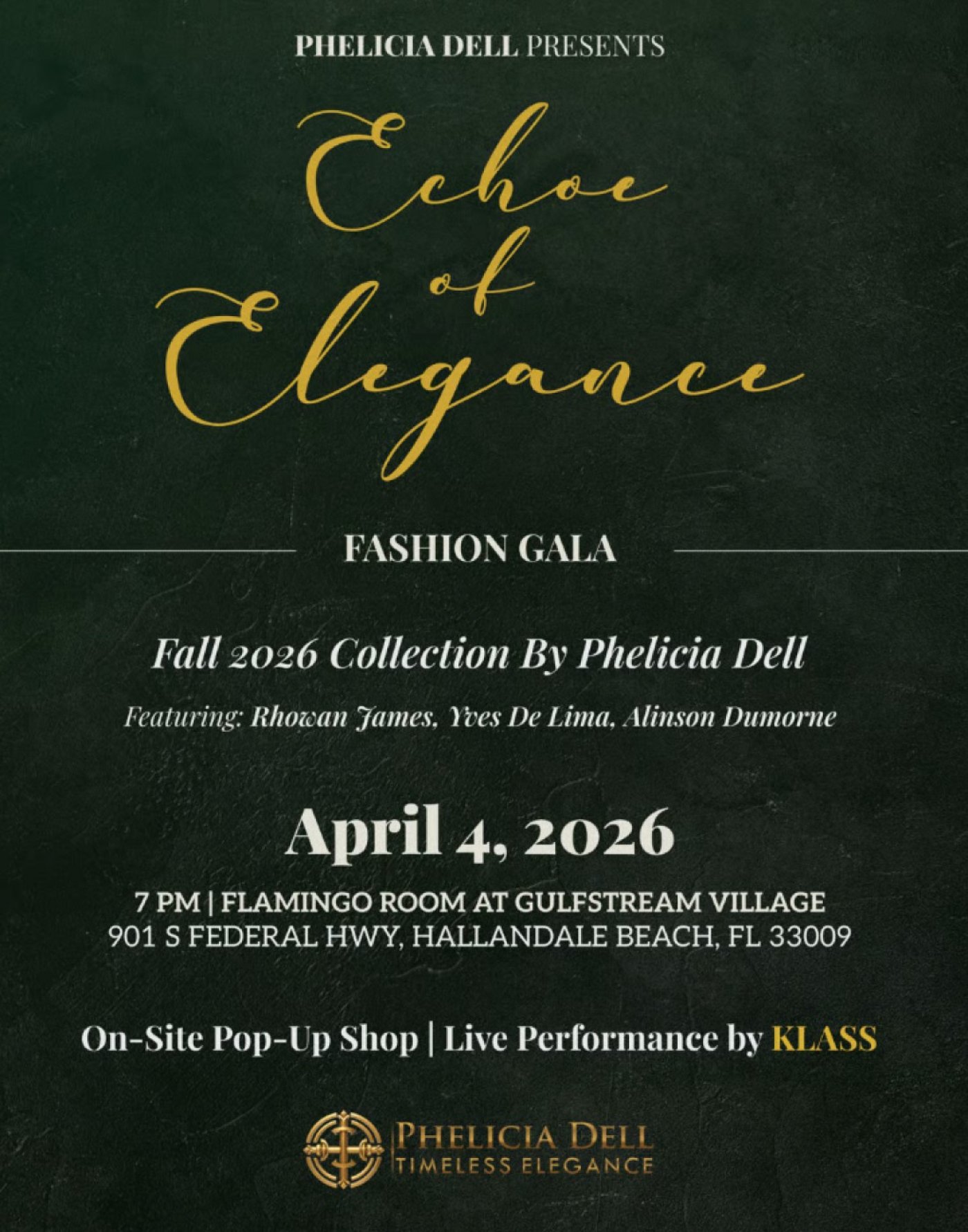 A new luxury fashion platform celebrating Haitian excellence and Caribbean design debuts in South Florida with the inaugural Echoe of Elegance Fashion Gala. The evening begins with a couture runway presentation in the Flamingo Room at The Village at Gulfstream Park, followed by an official afterparty at Sport of Kings Club.