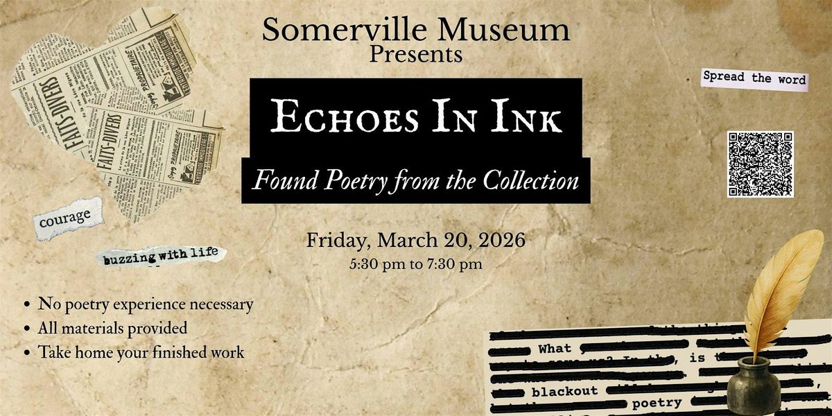 Join the Somerville Museum for a hands-on creative workshop where historic letters, newspapers, maps, and documents become the raw material for art. Using reproduced archival texts, participants will craft found and blackout poetry, revealing hidden voices, emotions, and stories already embedded in the words of earlier generations.