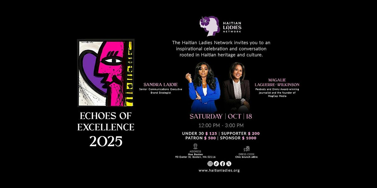 This HLN Echoes of Excellence 2025 fundraiser is a vibrant brunch reception celebrating Haitian culture, connection, and community impact. The Haitian Ladies Network® is a 501(c)(3) nonprofit, we’re raising funds to help continue and expand HLN’s powerful programming built around five core pillars: Financial Well-Being, Bridging Haiti & Its Diaspora, Culture & Heritage, Wellness & Healing, and Voice & Influence, that uplifts Haitian women and girls worldwide.
