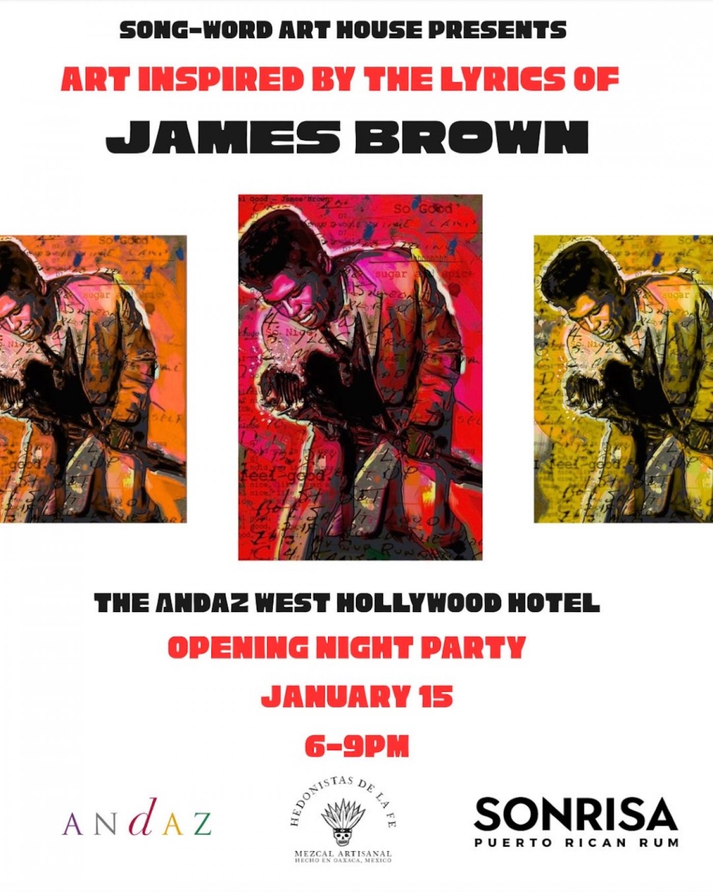 Andaz West Hollywood invites guests to explore Echoes of the Flame, a new art exhibition presented by Song-Word Art House honoring the legendary James Brown. Inspired by the icon’s influential lyrics and cultural legacy, the exhibition features visually striking works that capture the rhythm, soul, and impact of the Godfather of Soul.