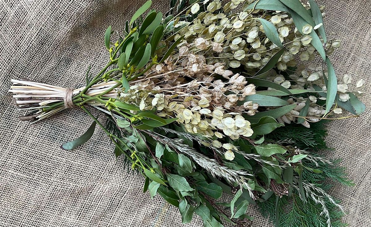 Formal presentation bouquets are often composed in this style so that the audience can enjoy the full composition. A sheaf is also a popular style for memorial flowers as it will rest in peaceful beauty by a loved one’s graveside. So once you’ve tried your hand at this half-day course, you’ll be prepared to forage and whip up floral designs for all manner of occasions.