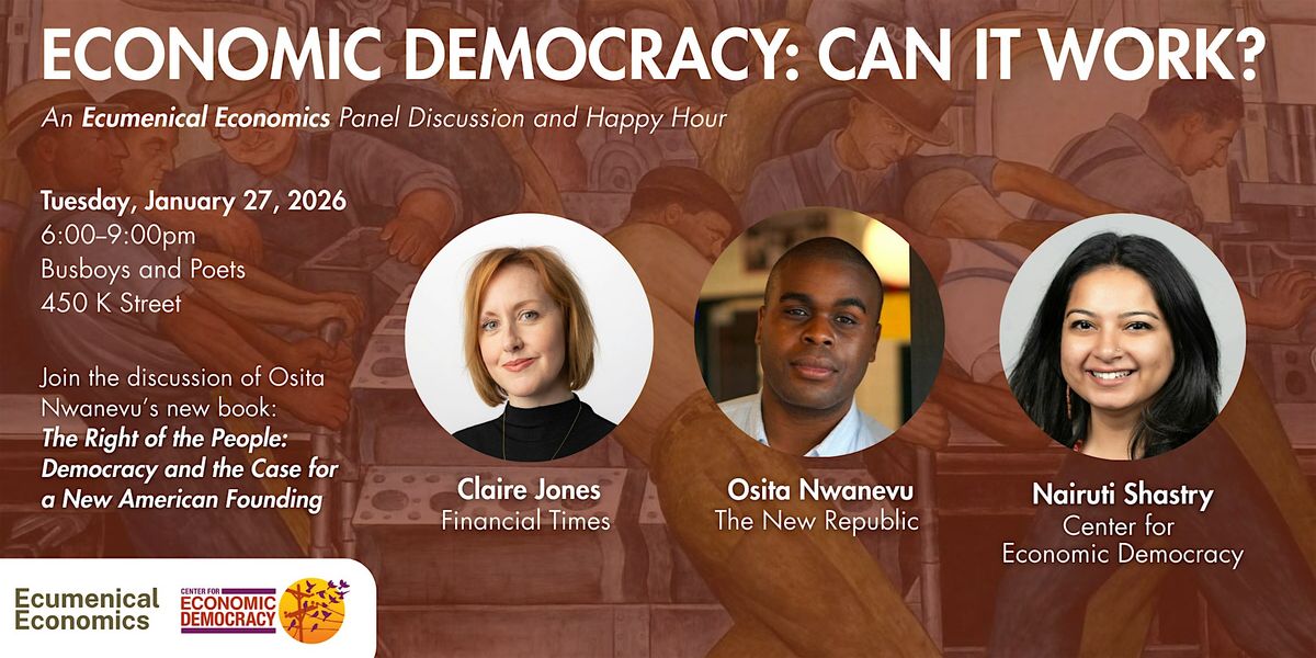 This conversation brings together Osita Nwanevu, author of The Right of the People: Democracy and the Case for a New American Founding (2025) and Nairuti Shastry of the Center for Economic Democracy, to explore different pathways toward “economic democracy.” From rebuilding unions and expanding worker ownership to community-led wealth building and solidarity economy models, they’ll discuss how democratic participation in our economic lives can offer an alternative to an economic system dominated on one hand by technocratic engineering and on the other by laissez-faire free markets. The conversation will be moderated by Claire Jones, US Economics Editor at the Financial Times.