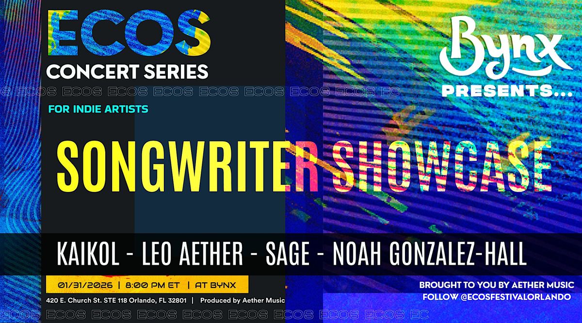 Join us at Bynx Cafè on Saturday, January 31st, for a songwriter showcase with wonderful local artists, featuring Kaikol - Gabriel Dominic (Sage Band) - Leo Aether - Noah Gonzalez-Hall.