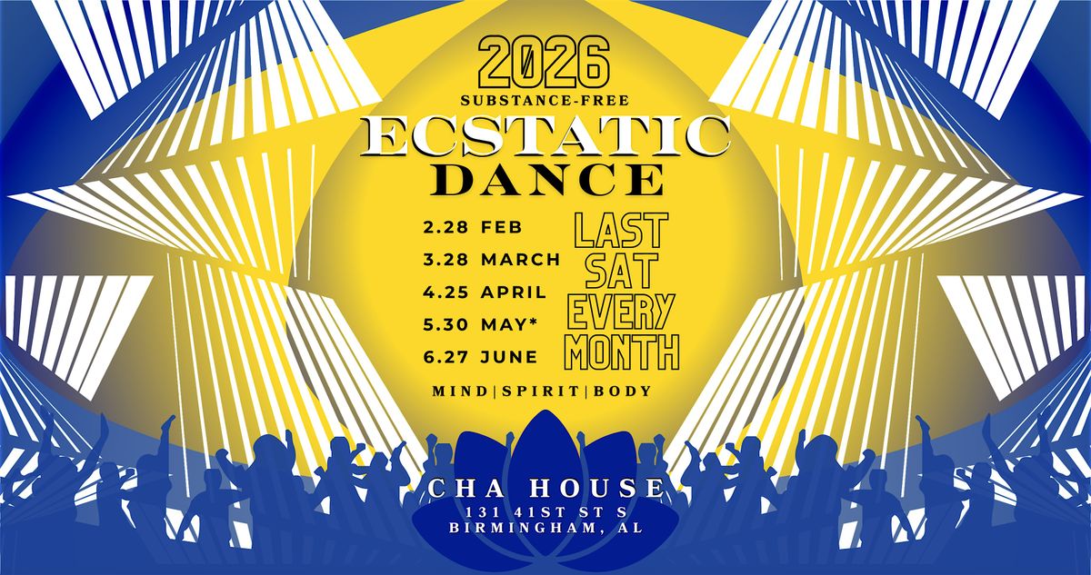 We’re excited to announce a full year of monthly Ecstatic Dances, happening every last Saturday of the month at @chahousebham. 🕺💫