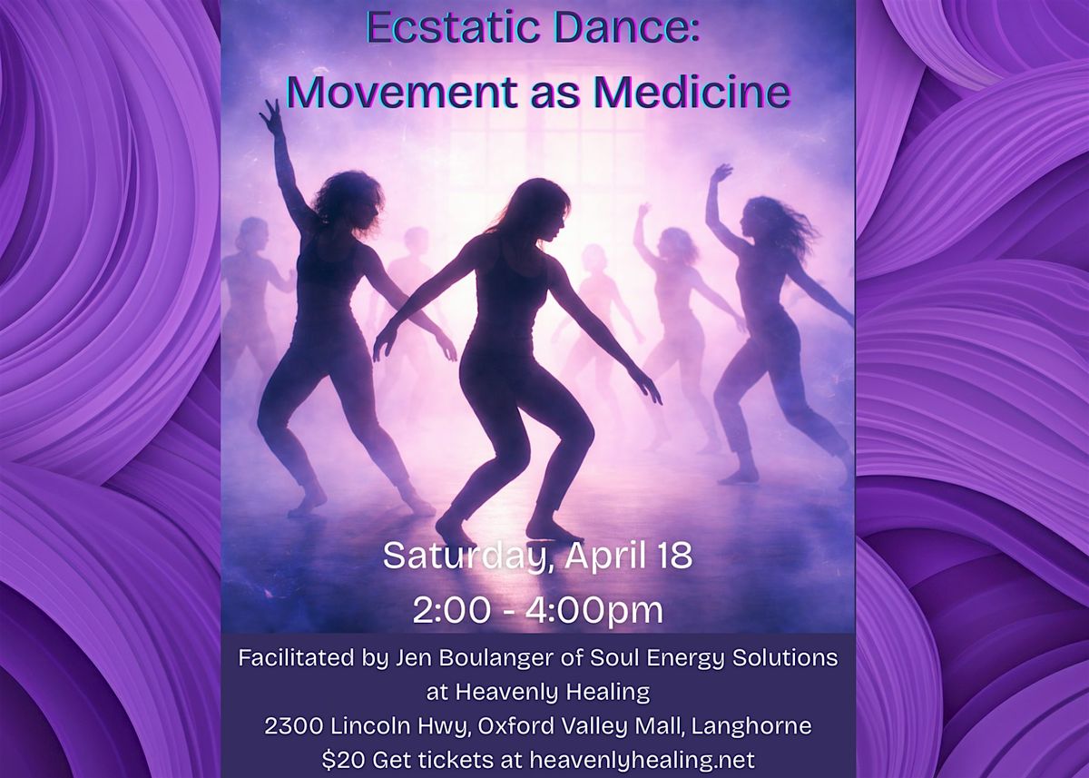 Join us for Ecstatic Dance: Movement as Medicine, a journey of self-expression, release, and spiritual connection through free-form movement.