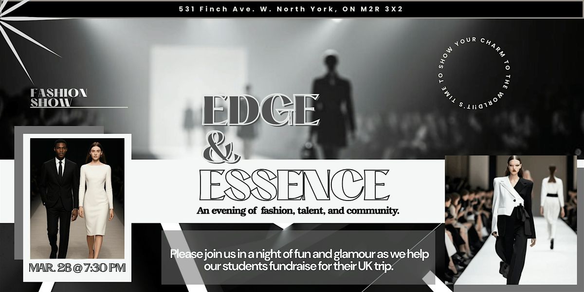 Step into a night of style, creativity, and unforgettable energy at the Edge & Essence Fashion Show! Join trendsetters, fashion lovers, and creatives for an in-person experience that celebrates bold looks, fresh designs, and the true essence of fashion culture.