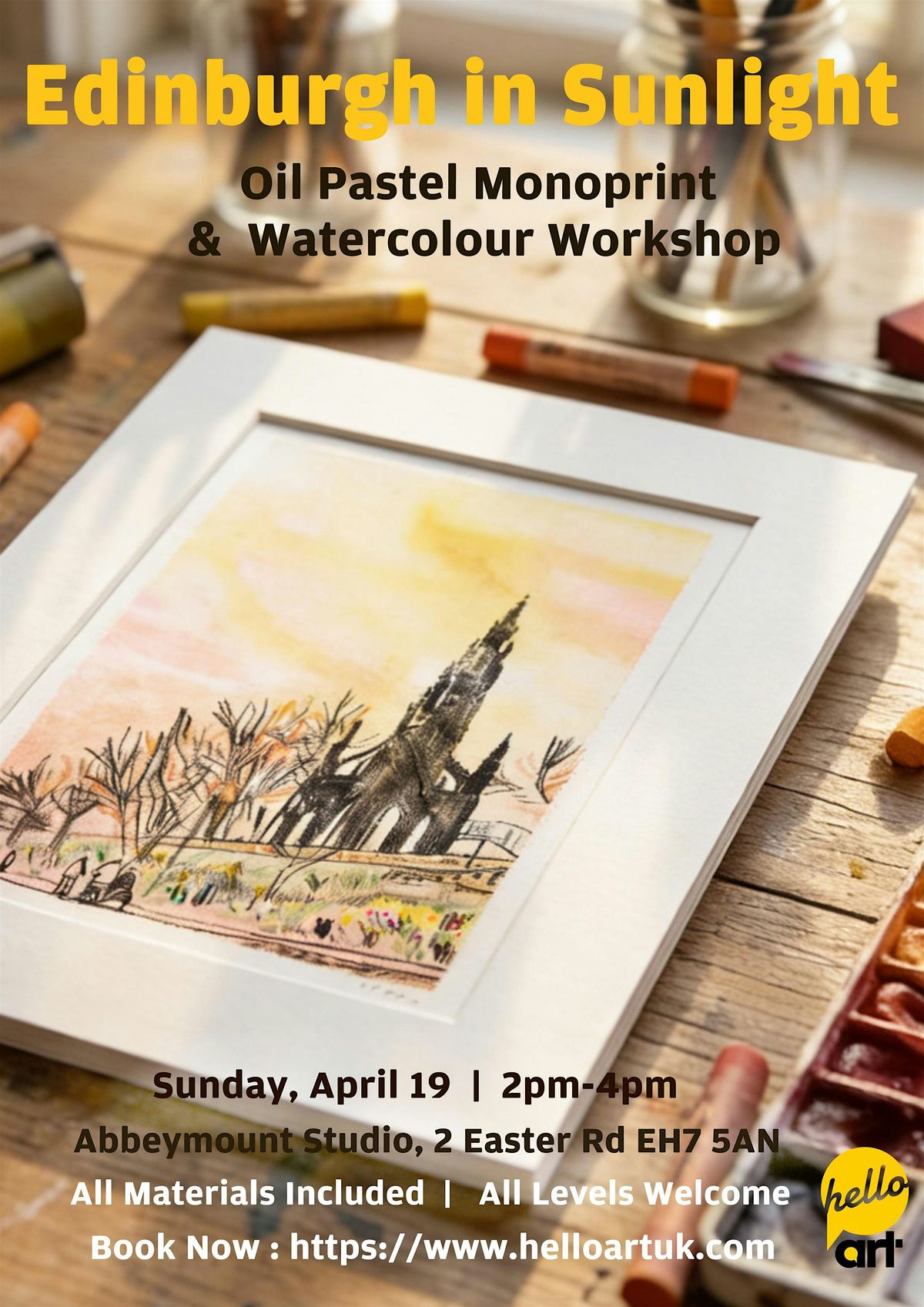 Edinburgh in Sunlight - Oil Pastel Mono-print & Watercolour Workshop