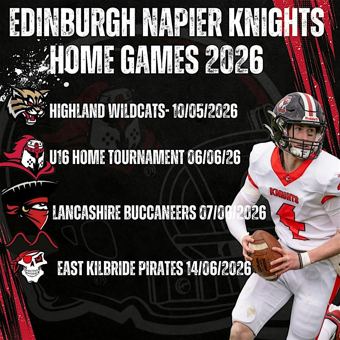 Join Edinburgh Napier Knights U16 & U19 American Football for their 2026 Season games!