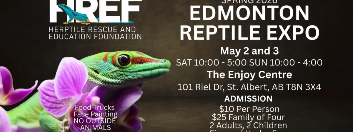 Discover the fascinating world of reptiles at the HREF Edmonton Reptile Expo! Whether you're a seasoned herpetologist or a curious newcomer, there's something for everyone. Explore a diverse array of snakes, lizards, turtles, amphibians, and invertebrates all showcased by passionate breeders and experts. There are plenty of education opportunities, our rescue program informational booth and you even get a chance to handle some of these amazing creatures. Find everything you need for your reptile friends, from high-quality habitats to specialty food and accessories. Bring the whole family for a fun, educational, and unforgettable experience! Plus....food trucks!!!To avoid crowds on opening day (September 27), we recommend families attend in the afternoon to get the most out of activities.