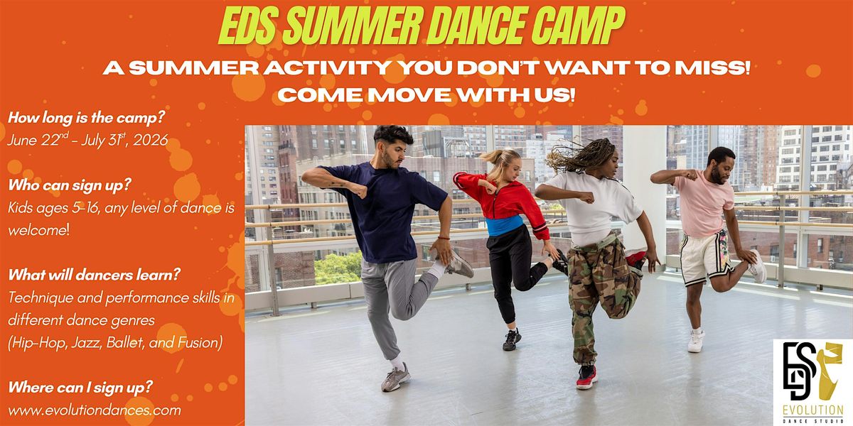 Evolution Dance Studio is hosting their Summer Dance Camp, starting from June 22nd, 2026, and ending on July 31st, 2026. Sign up today for either a week-long session, or multiple week-long sessions!