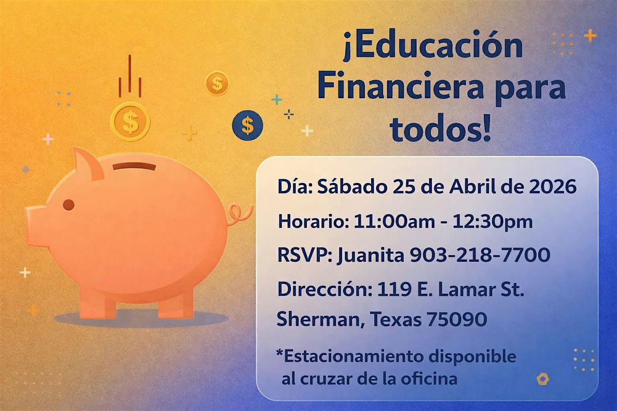 Este taller es para individuos, familias y dueños de negocio que quieren tomar control de su futuro financiero.