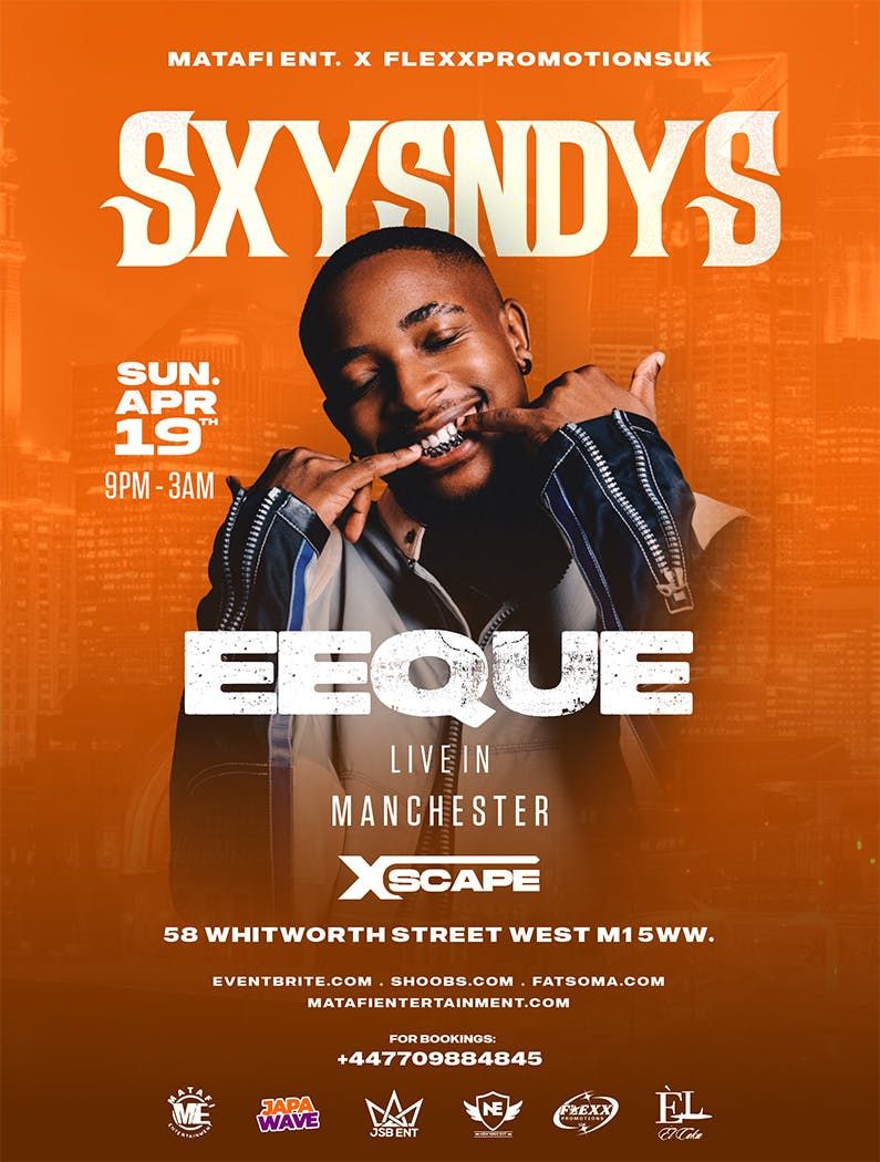 Manchester, your Sunday just got upgraded.EEQUE touches down at Xscape for a one-night vibe you already know is going to be serious. Expect nothing but energy all night — from Afrobeats and Amapiano to Hip-Hop, RnB and Dancehall.